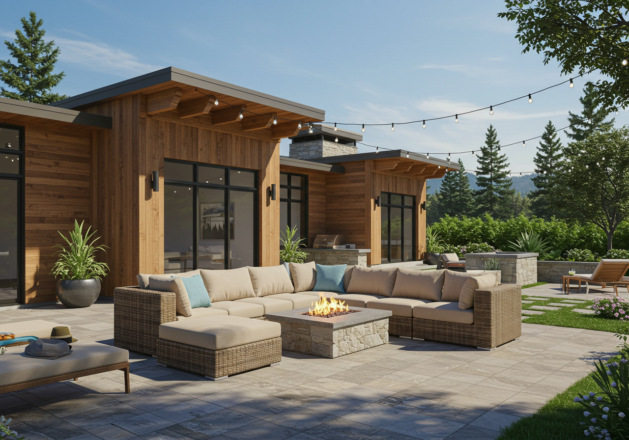 Soaring light-filled windows, peaceful greens, warm red cedar, and clean cool rolled steel, this stunning contemporary home soothes the senses. The functional open floor plan is light and airy. Equally impressive are the private covered terraces offering extended living and entertaining spaces. With six bedroom suites, a media room, office, and flex loft there is room for family and friends to gather. Counters are made of concrete and Douglas fir, with a large fir countertop providing a stunning (and practical) frame to the kitchen. Cabinets are stained white oak with steel inserts while vertical back splashes are creatively crafted from teak tiles. Flared metal panels are found on the exterior of the home and on soaring fireplaces while metal railings are hand-forged works of art. Covered terraces offer exceptional outdoor living.
