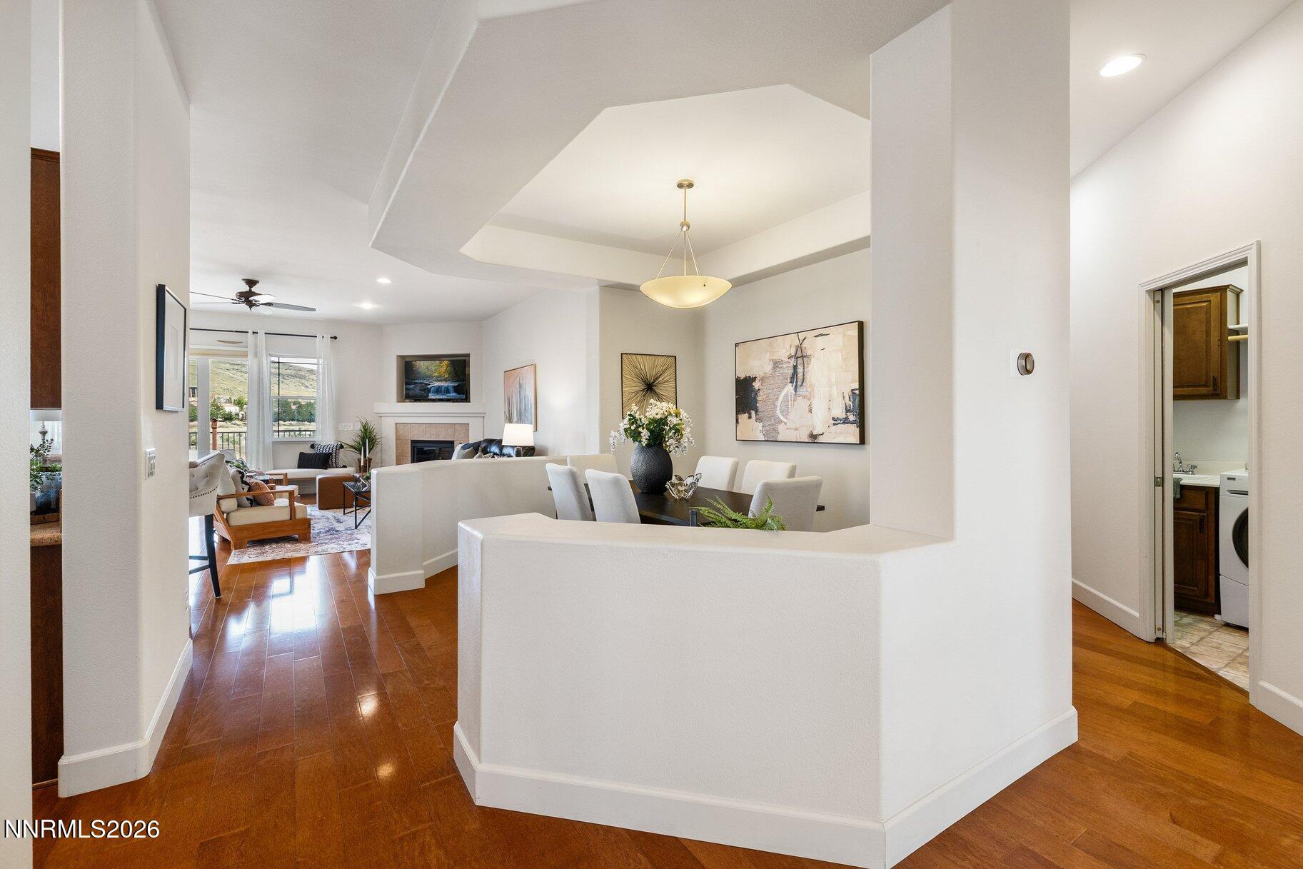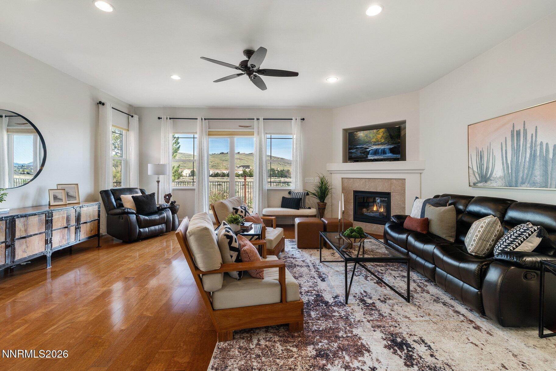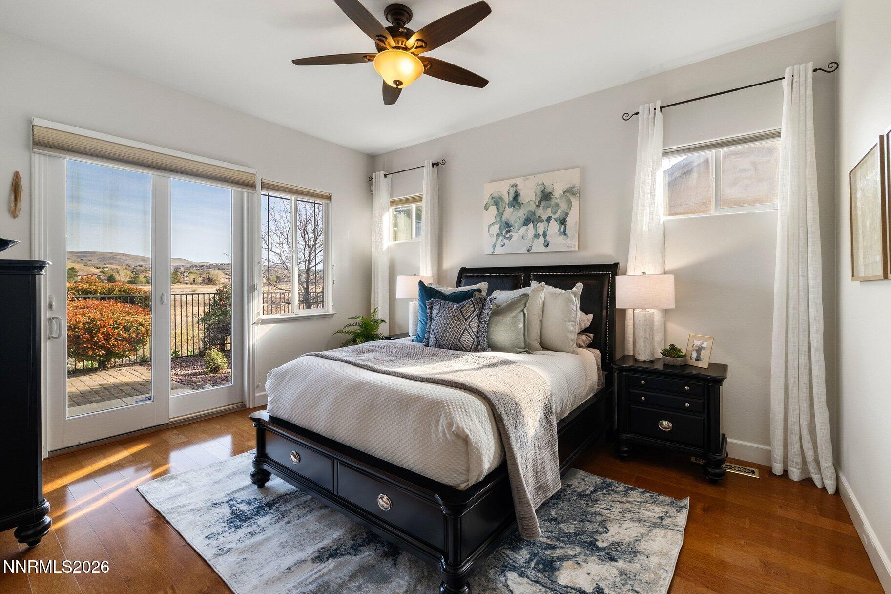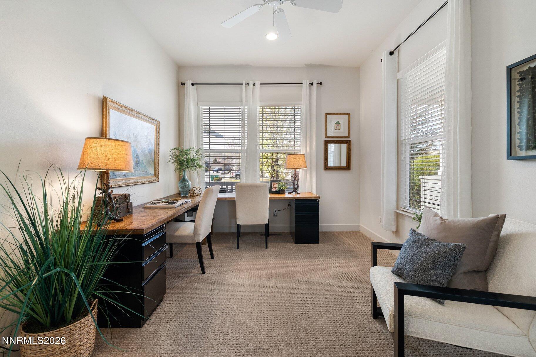 Set within the Fairways at Kiley Ranch community, this single-level home offers a lifestyle defined by ease, views, and everyday connection to the outdoors. Framed by sweeping foothill vistas with Mount Rose to the south, the setting brings a sense of openness and calm to daily living. Located just steps from a charming neighborhood park and jungle gym--and a short walk to the Kiley Fairways clubhouse and 9-hole walking golf course--the home blends convenience with an active, community-oriented lifestyle. Inside, the light-filled layout is both functional and inviting, featuring three bedrooms, with the third currently styled as a home office. Upgrades include engineered hardwood flooring throughout, newer carpet in the bedrooms, elevated wood cabinetry, and more. Low maintenance backyard with a full paver patio and automatic drip system for natural trees to the sides. An additional flex space with a closet and private entry from the garage offers ideal use for storage, a gear room, or added versatility. A rare combination of views, walkability, and thoughtful livability.